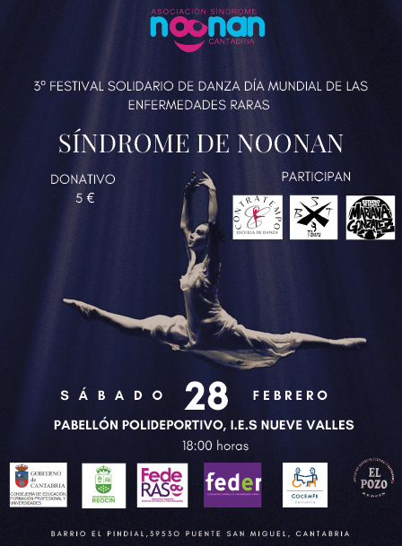 El sábado 28 de febrero se celebrará el 3º Festival Solidario de Danza con motivo del Día Mundial de las Enfermedades Raras, a beneficio de la Asociación Síndrome de Noonan de Cantabria (ASNC).