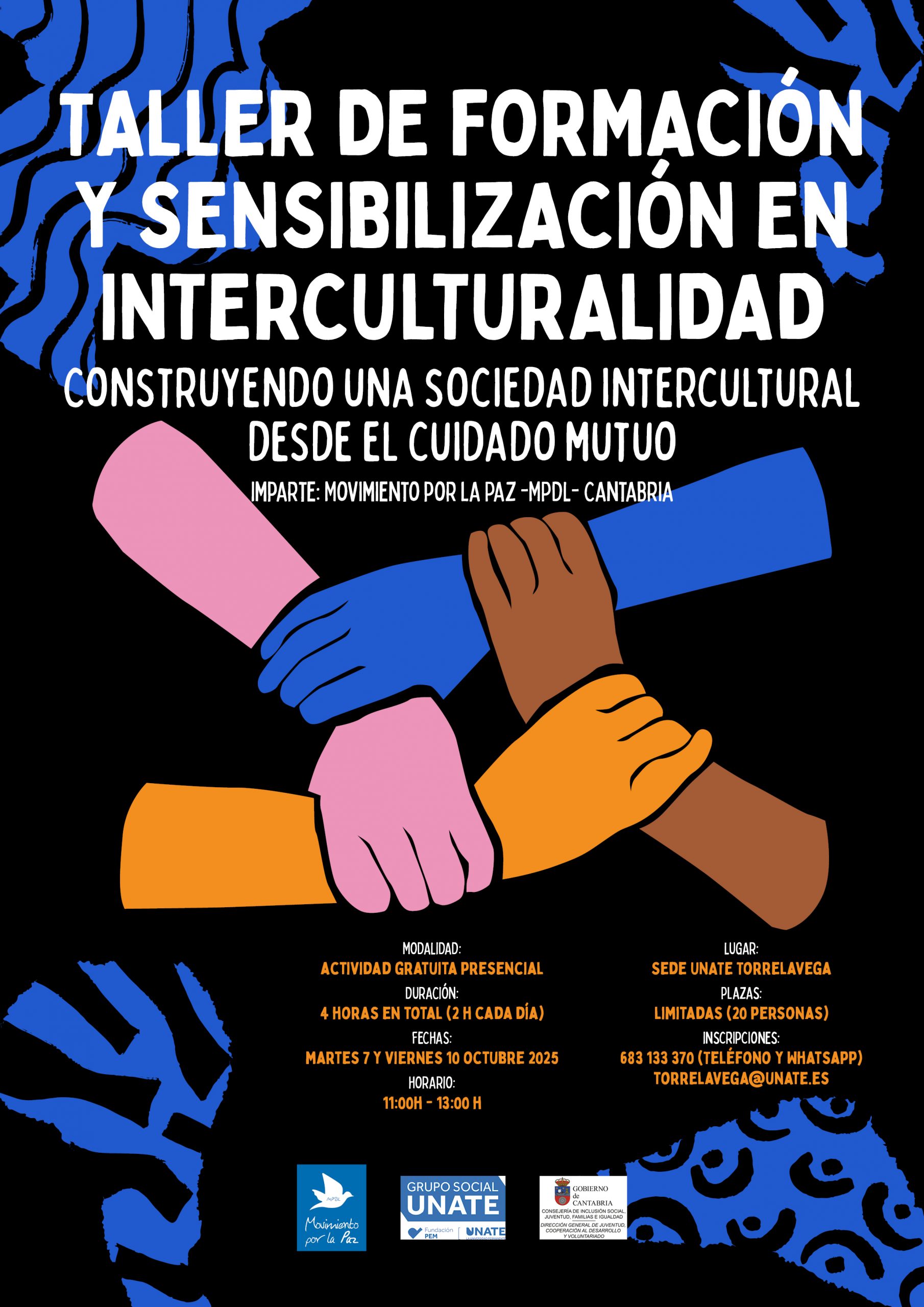 Iniciamos en colaboración con Unate Cantabria un taller gratuito de dos jornadas sobre sensibilización intercultural en su sede de Torrelavega. Si quieres inscribirte, 683 133 370 (teléfono o whastapp) o torrelavega@unate.es.